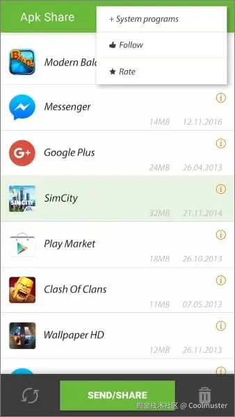 以下是在Android之间传输应用程序的步骤: