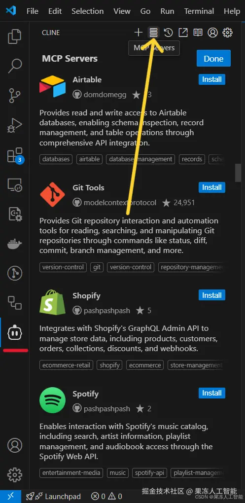 - 在 Cline 中直接搜索并安装 MCP 服务器。
