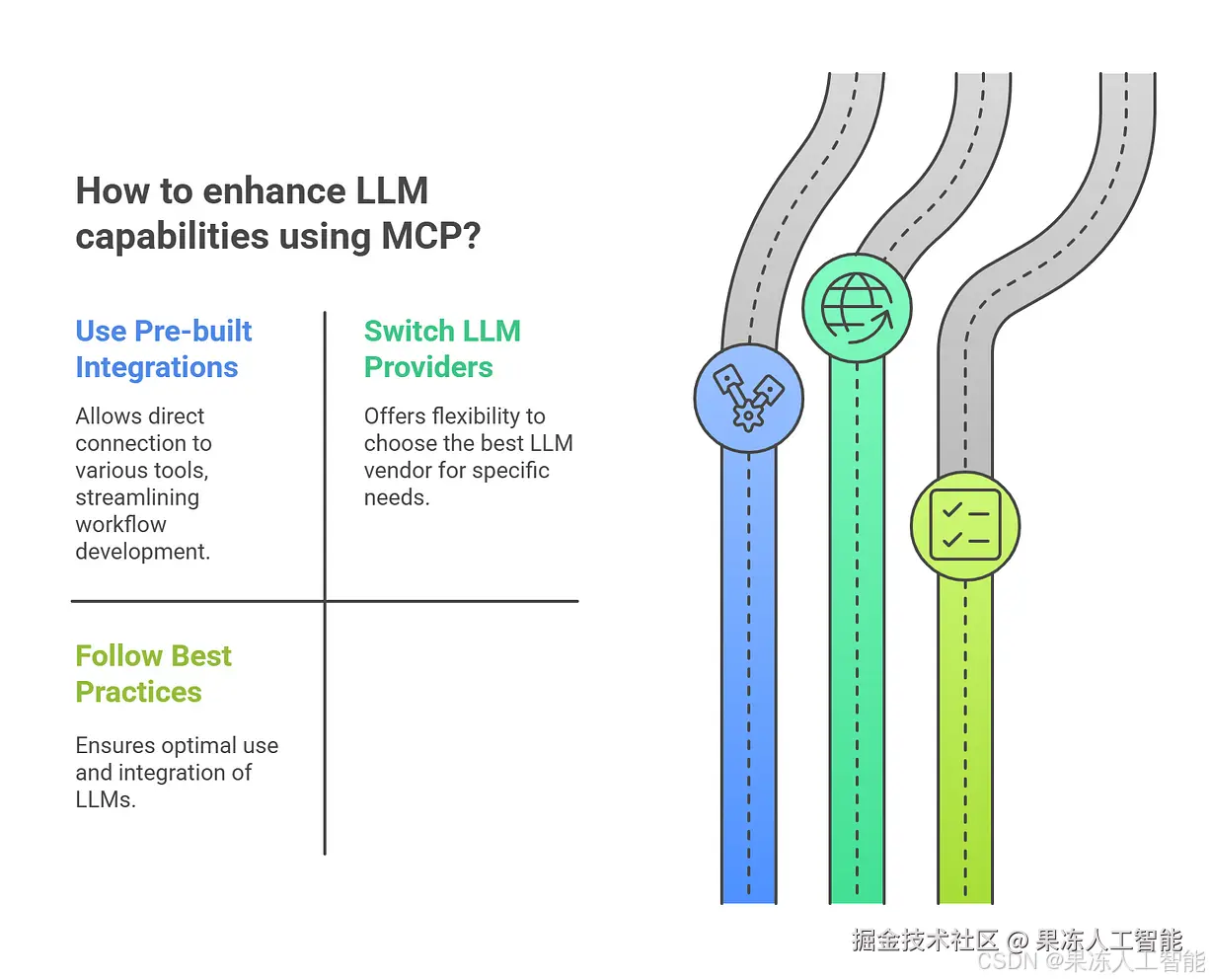 MCP 重要,是因为它提供了一份不断增长的“预构建集成列表”,你的 LLM 可以直接插进去用。