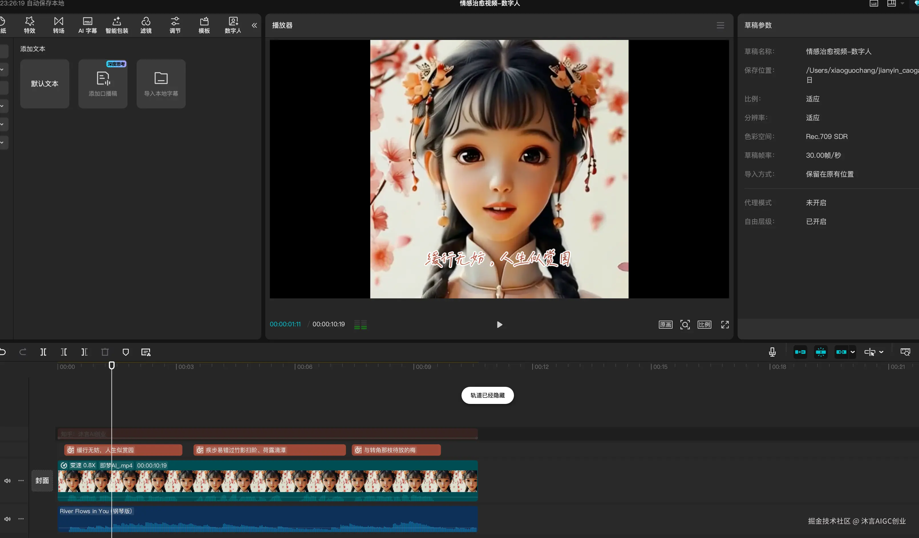 上一期我们已经实现了“暖心治愈情感文案视频的”制作实现,参见: