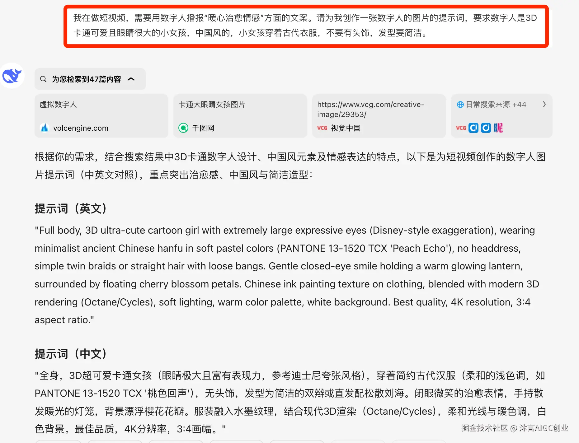 我们使用下面这段提示词,让DeepSeek帮我们生成数字人提示词: