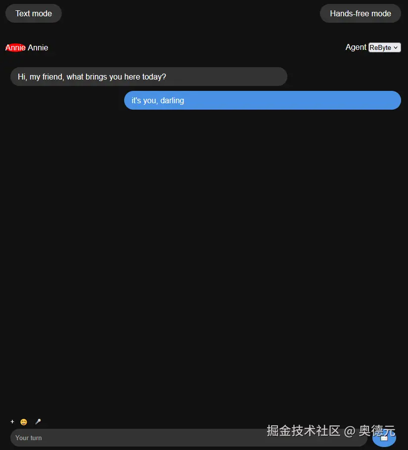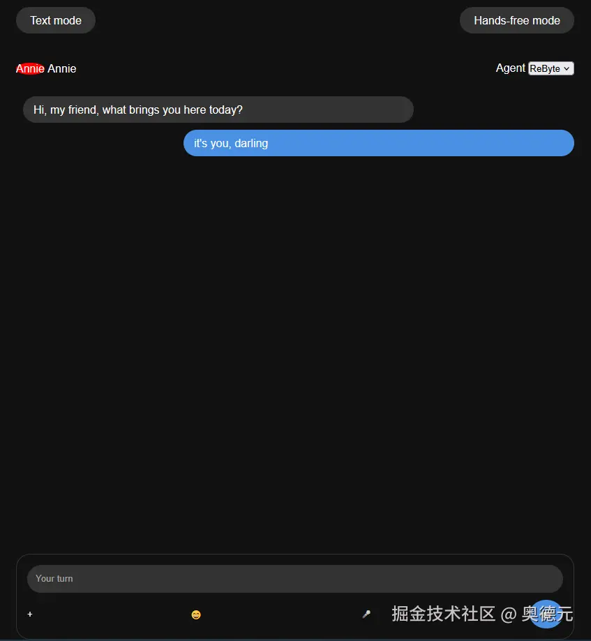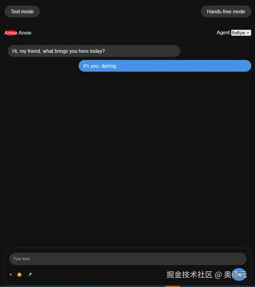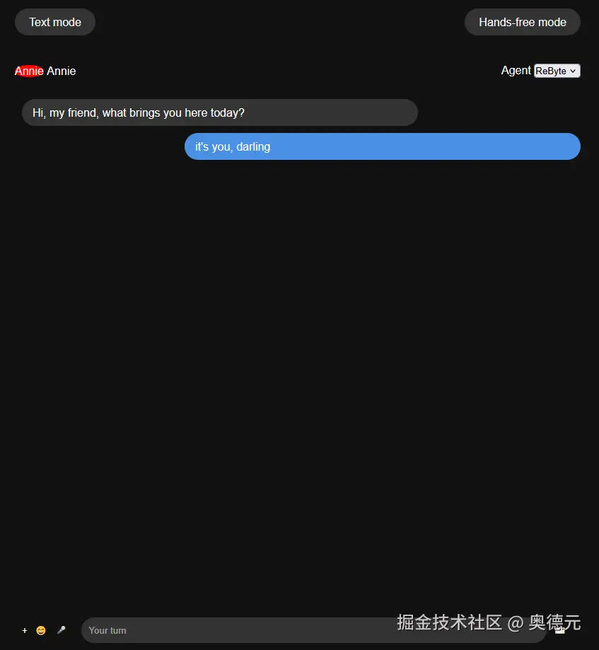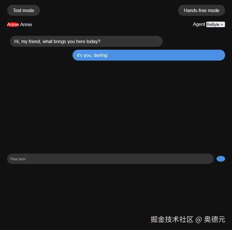 截了个RealChar的Conversation对话的界面图片,想让豆包帮我生成一个代码,要求跟他长的差不多