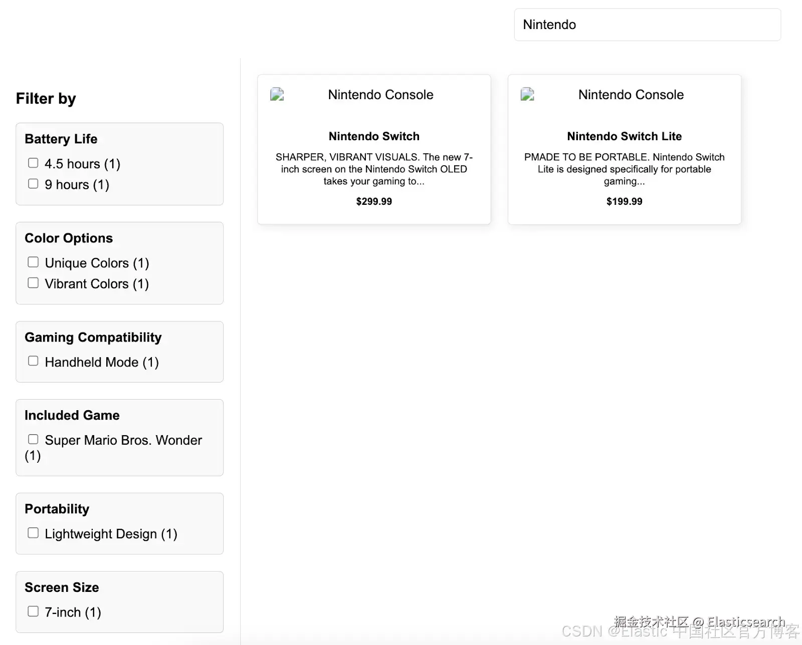 在上一步中,我们将 brand 和 storage_capacity 字段设置为 keyword 类型,使它们可以直接用于 aggregations(聚合,也就是 facets)。