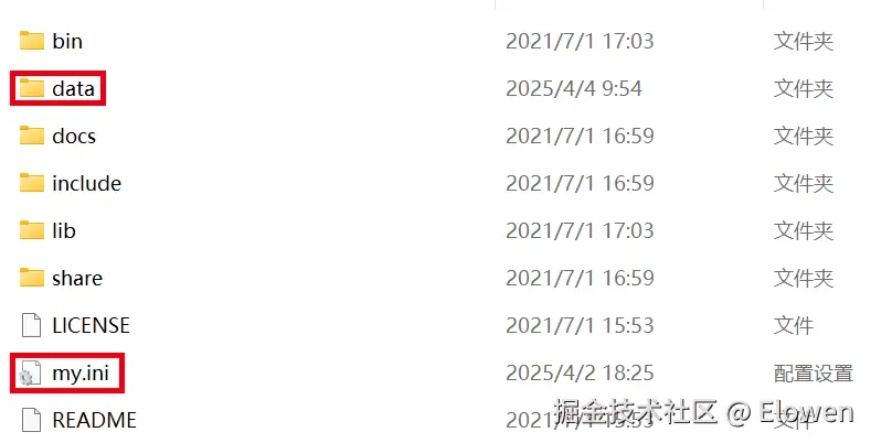 不管是哪个版本,点进去之后都是如下图所示,但是没有 my.ini 和 data 这两个