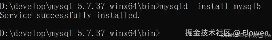 mysqld --initialize-insecure回车自动生成 data 文件夹(该命令回车执行之后什么都不会有,这里不会有密码,因为该命令执行完之后启动 mysql 不需要密码)-