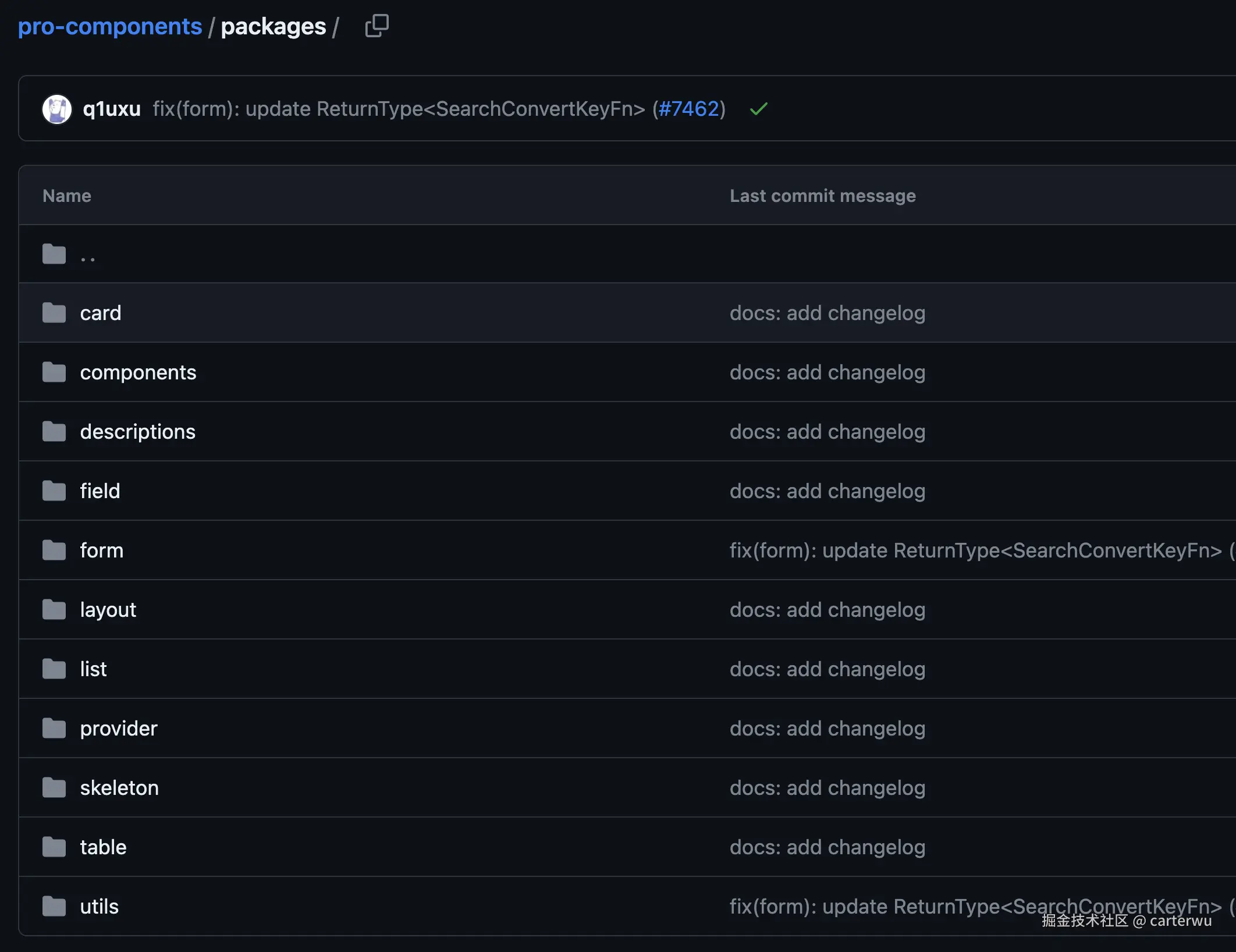 另外,antd的底层逻辑组件库react-component是一百多个单仓库组成github.com/orgs/react-… (大部分采用dumi框架,也有瞥见使用umi框架的)