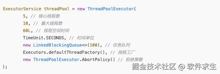 - 线程工厂(ThreadFactory) :用于创建线程,通常使用默认的 Executors.defaultThreadFactory() 即可。