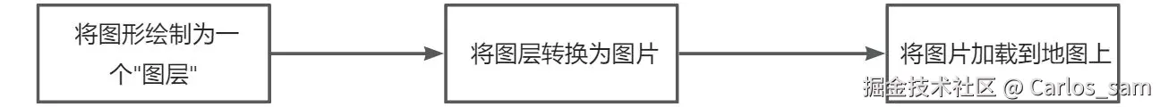 “图片渲染”的基本思路思路是,我不直接在地图上绘制图形,而是先在其它的地方将图形绘制好,然后生成一张图片,最后再将图片以图片图层的形式渲染到地图上。