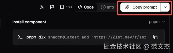 最让人惊喜的是,组件详情页提供了 Copy Prompt 按钮: