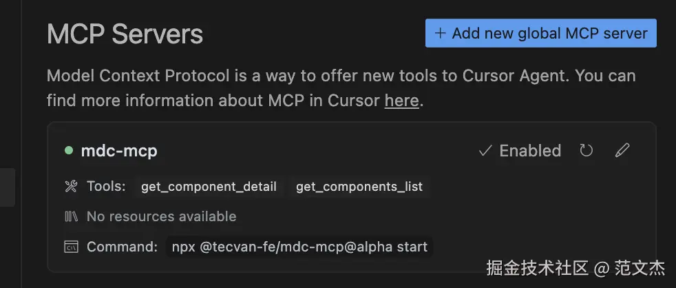 npx @tecvan-fe/mdc-mcp@alpha start,例如: