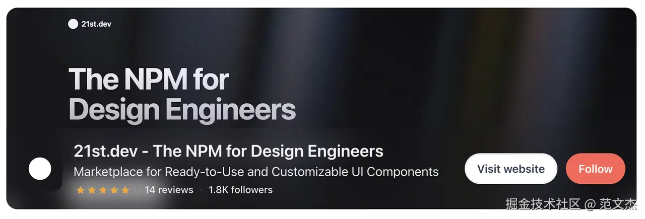 给大家推荐一个好东西:21st.dev ,大致上你可以将它理解为一个非常前卫的组件托管市场,特别之处在于: