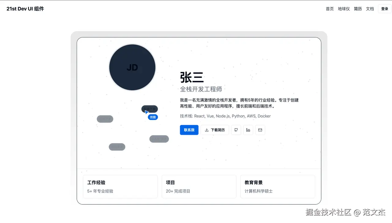 借助 21st.dev 与 cursor,我做了这样一个 demo: