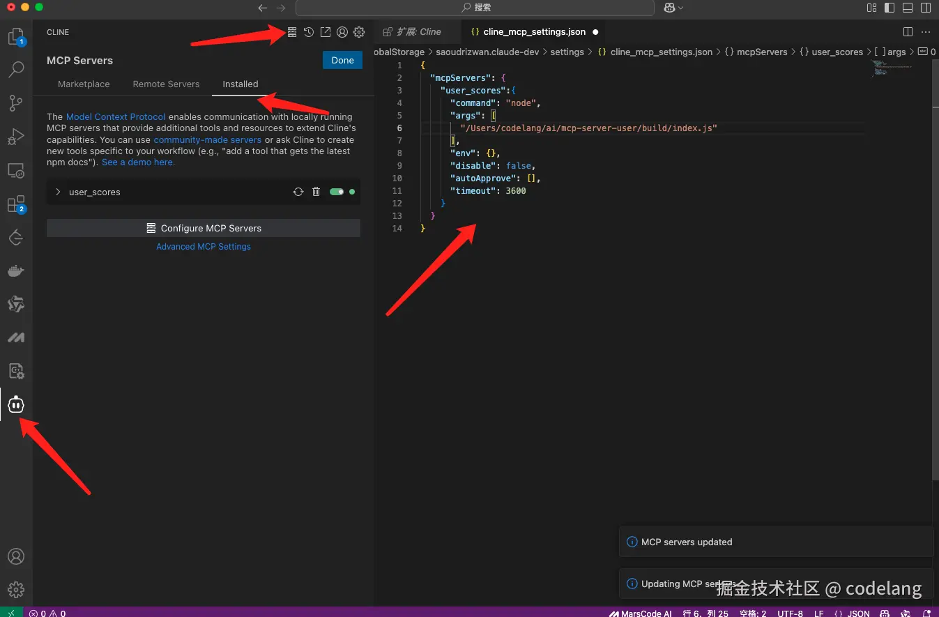 • 点击 MCP Server 的 icon