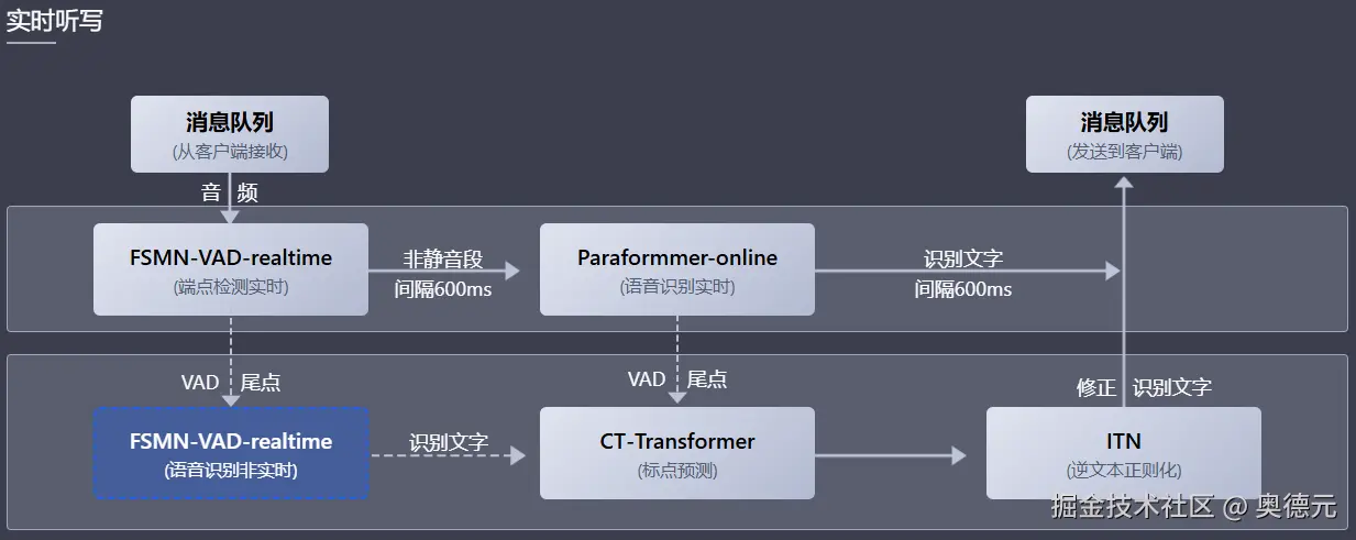 FunASR实时语音听写软件包,集成了实时版本的语音端点检测模型、语音识别、语音识别、标点预测模型等。采用多模型协同,既可以实时的进行语音转文字,也可以在说话句尾用高精度转写文字修正输出,输出文字带有标点,支持多路请求。依据使用者场景不同,支持实时语音听写服务(online)、非实时一句话转写(offline)与实时与非实时一体化协同(2pass)3种服务模式。