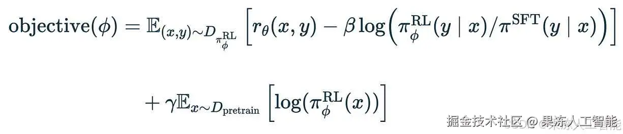这次我们回到预训练数据集 D_pretrain。其实就是照着老方法继续做 next-token prediction,只不过乘了一个常数 γ。加这项是为了在做 RLHF 的同时,保持模型对预训练数据的预测能力。