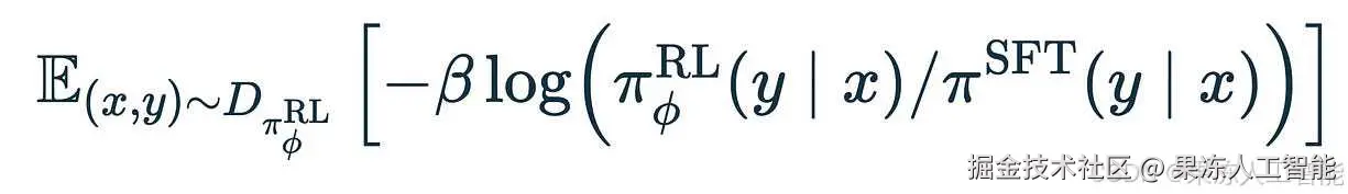 还是一样,x 是 prompt,y 是输出。πRL(y ∣ x) 是当前正在训练的模型输出的概率,πSFT(y ∣ x) 是指令微调后出发的基础模型输出的概率。