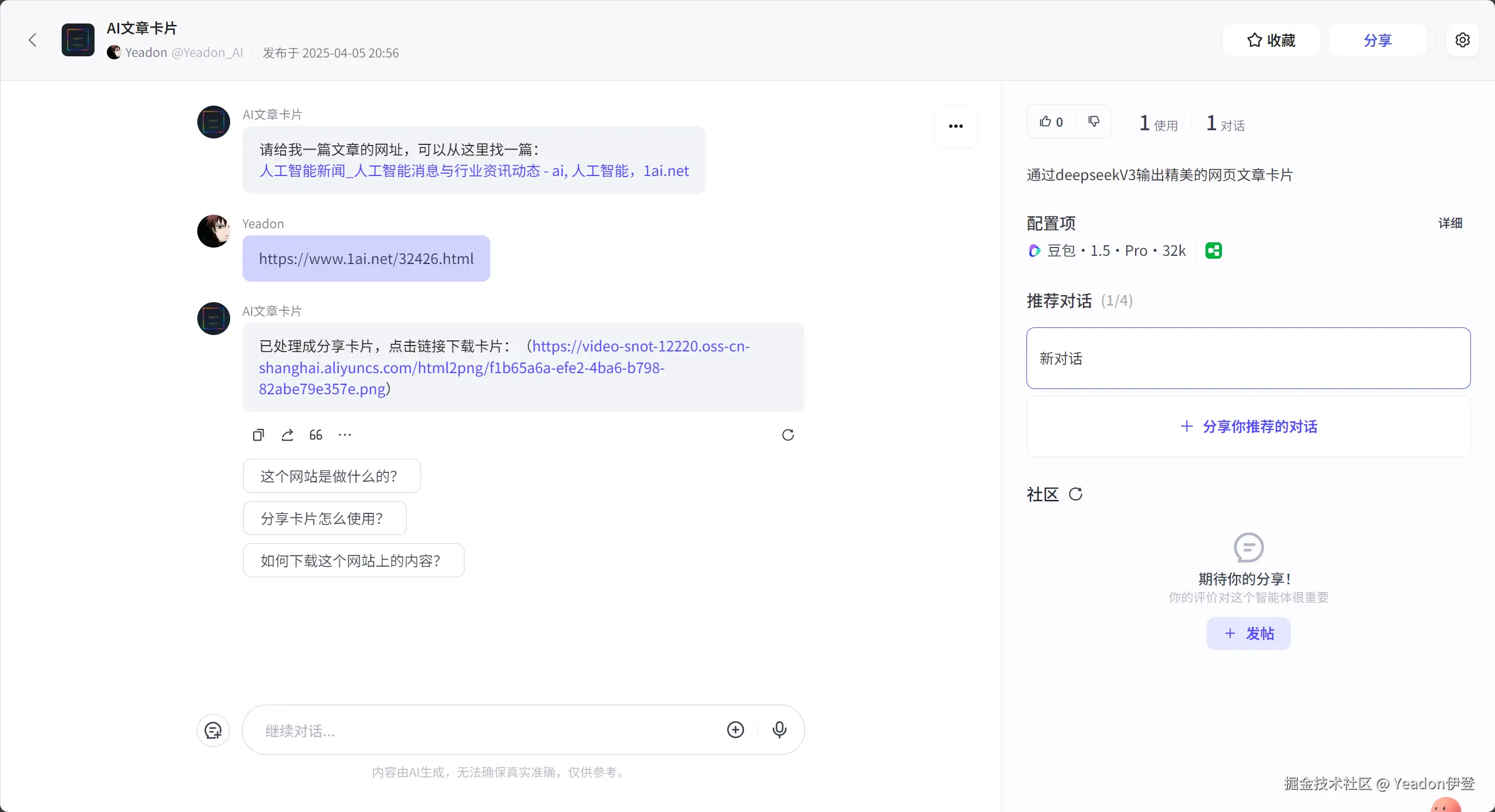 能不能利用它强大的代码生成能力,结合 Coze 的自动化流程,将网页文章的核心内容,自动渲染成一个设计感十足的前端页面,最终生成一张便于传播分享的图片卡片呢?