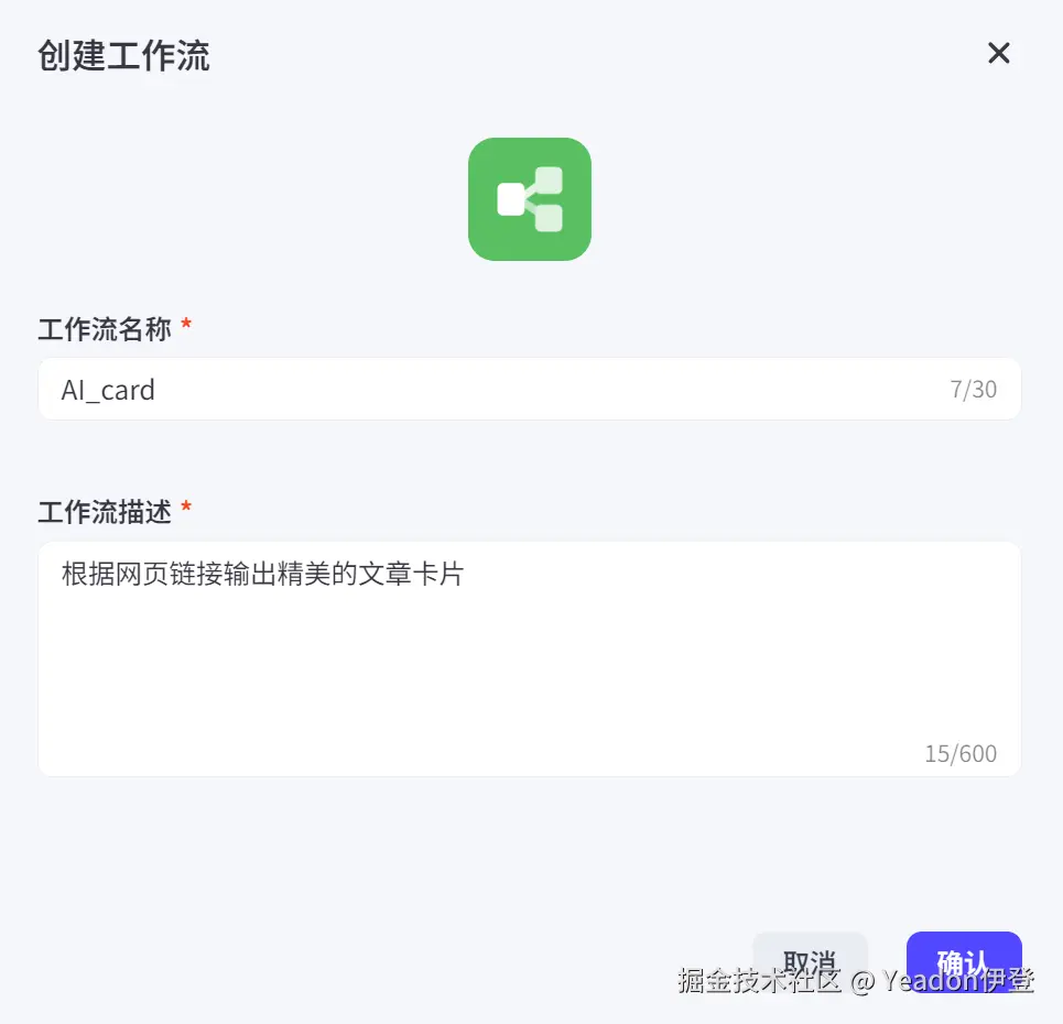 - 2. 新建工作流,取个响亮的名字,比如 AI_Article_Card_Generator。