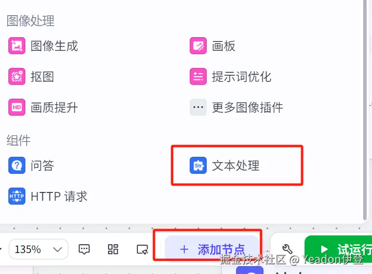 - 添加一个“文本处理”节点。