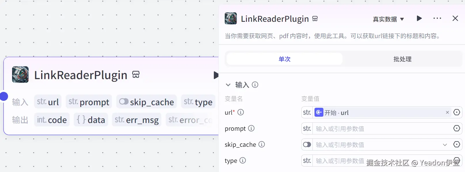 - 配置插件输入:将插件的 url 参数,引用“开始”节点中的 url 变量。