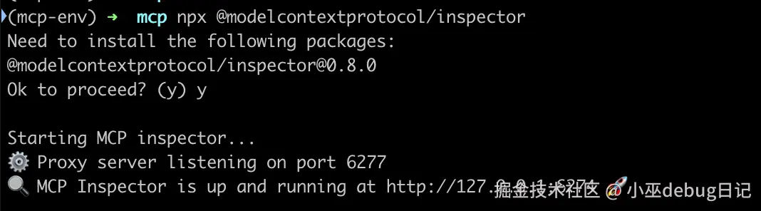 使用npx运行@modelcontextprotocol/inspector,如下所示: