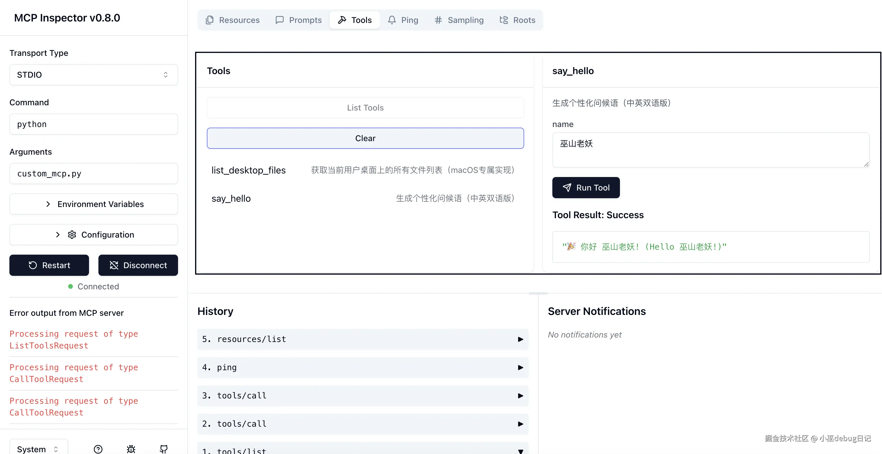 MCP Inspector检查消息交互: