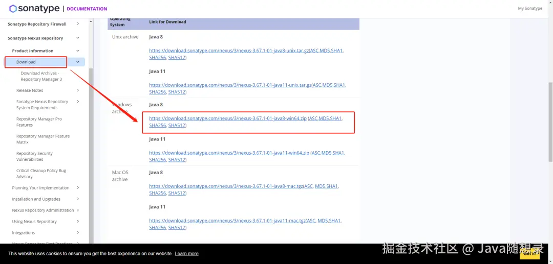 在点击Download之后,需要注意看一下对JDK版本的支持。