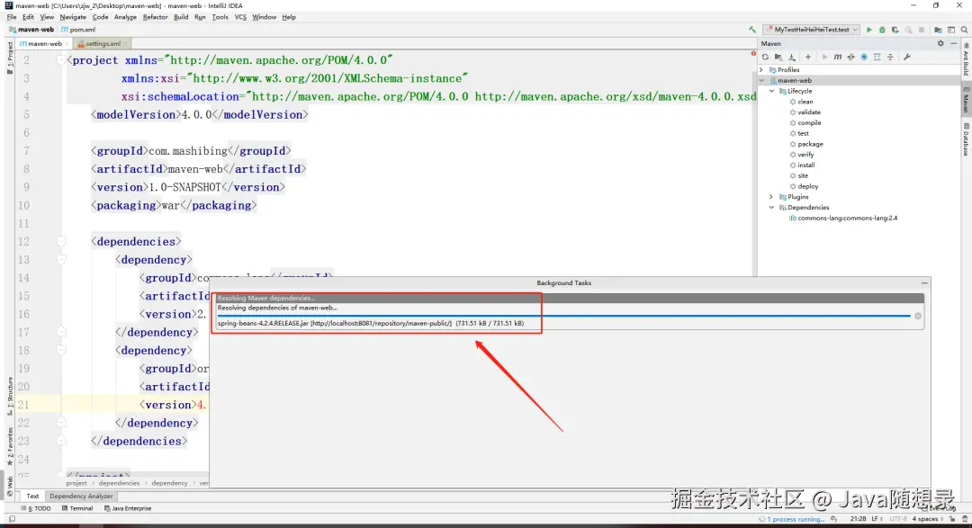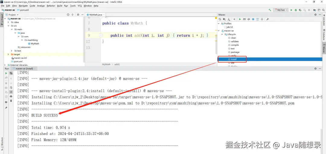 install:将当前项目做好编译,测试,打包,并且将项目安装到本地仓库。如果安装到本地仓库的是一个jar包,其他项目就可以将这个jar依赖过来使用。!