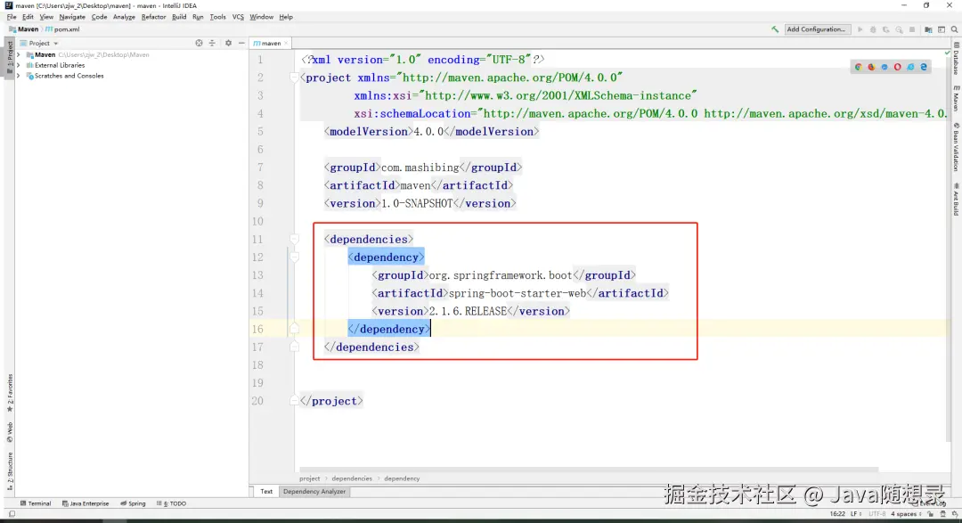 - Maven可以帮助我们更好地去管理jar包,只需要指定好jar的一些基本的标识,就可以让jar包支持我们的项目。而且Maven可以帮助咱们导入一个jar包后,自动将和它绑定好的其他jar包引入。