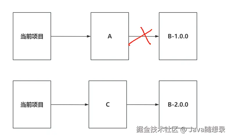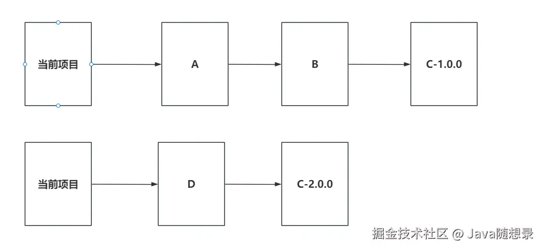明显,当前项目通过D依赖C的路径最近,基于就近原则,会使用2.0.0的版本