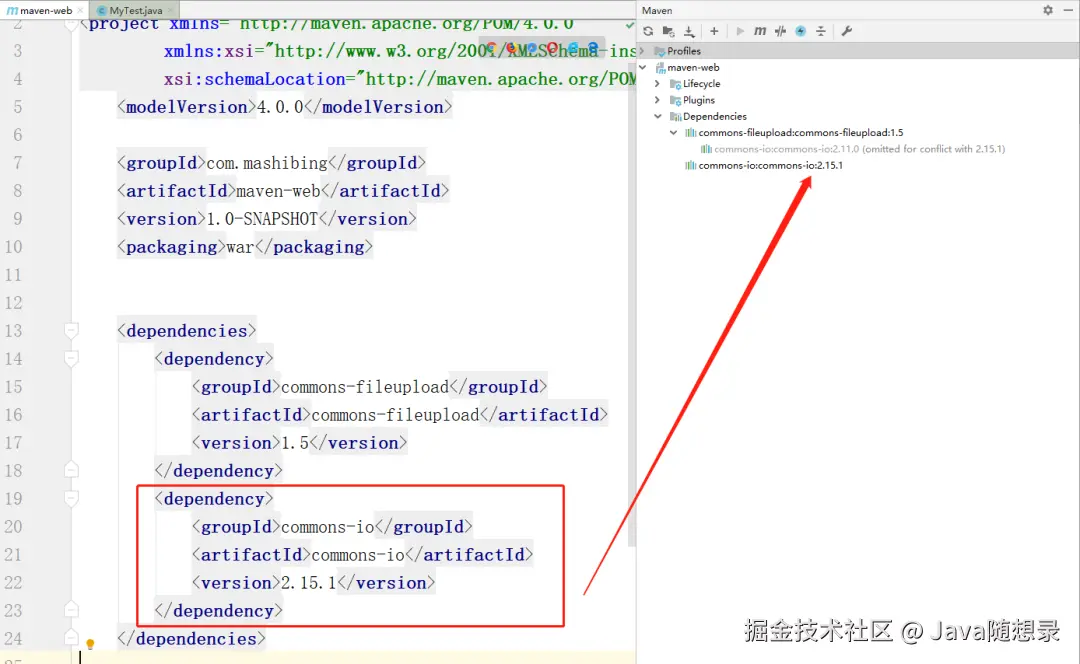 此时,当前项目会出现相同的依赖,有两个,但是版本不一样,此时就会产生依赖冲突问题。
