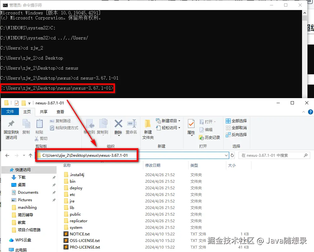 进入到nexus-3.67.1-01目录下,再进入bin目录下。
