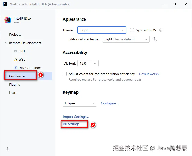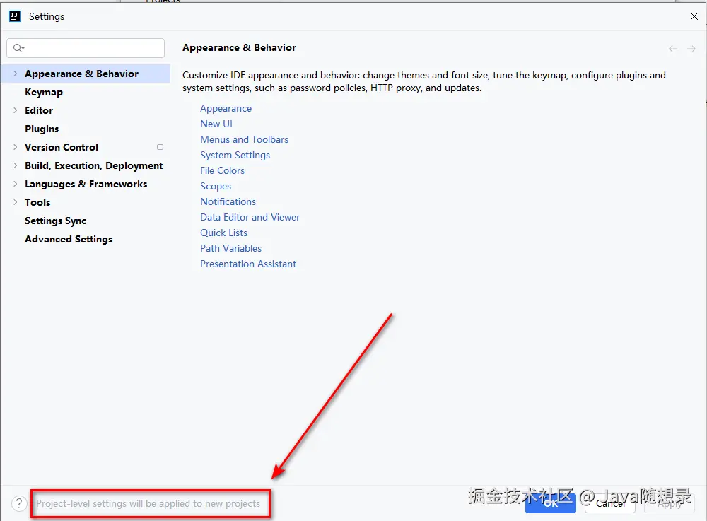 右下角的Configure的位置打开settings,点开后,在左上角可以看到是Settings for New Projects
