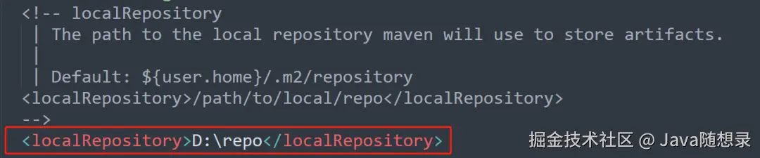 根据配置文件中的注释,默认是仍在用户目录下的.m2目录下的repository目录中。