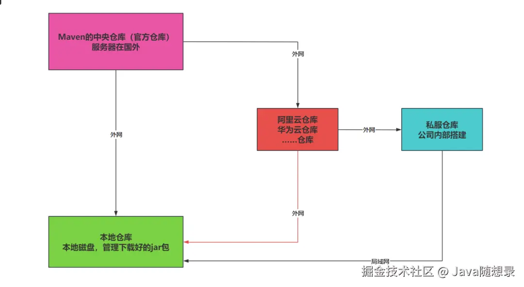 仓库很多,有官方的中央仓库,还有国内公司的仓库,还有公司内部会搭建的私服