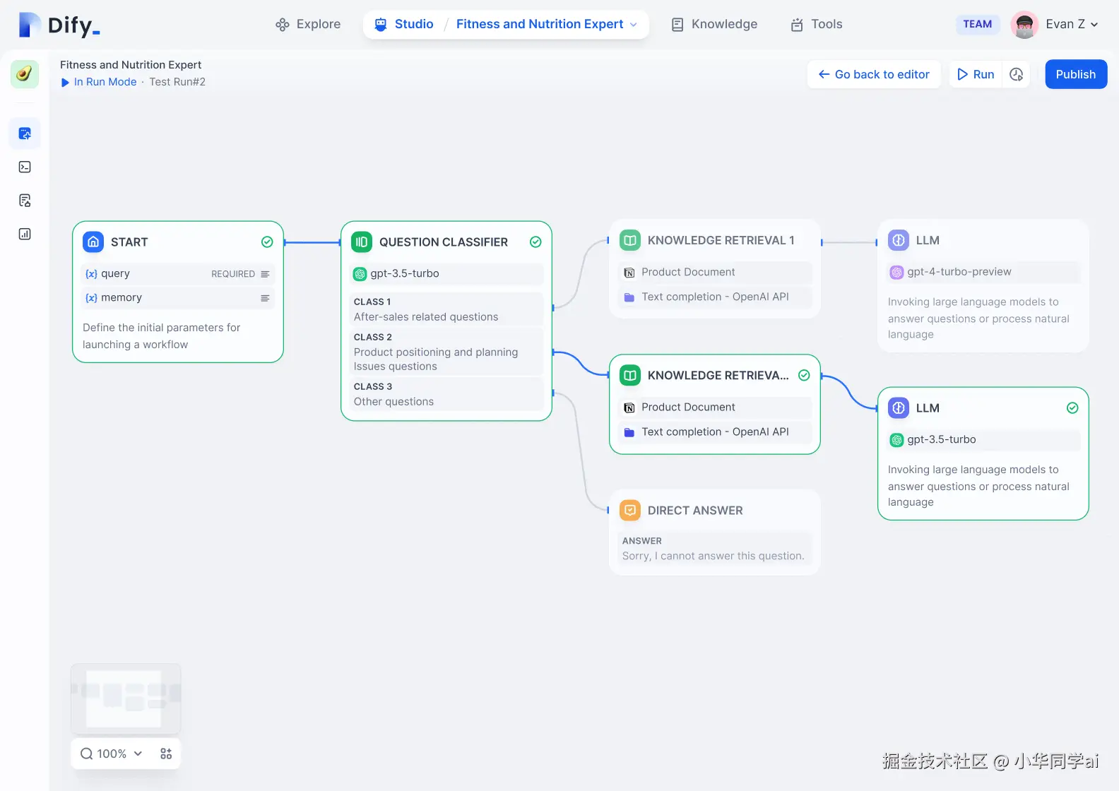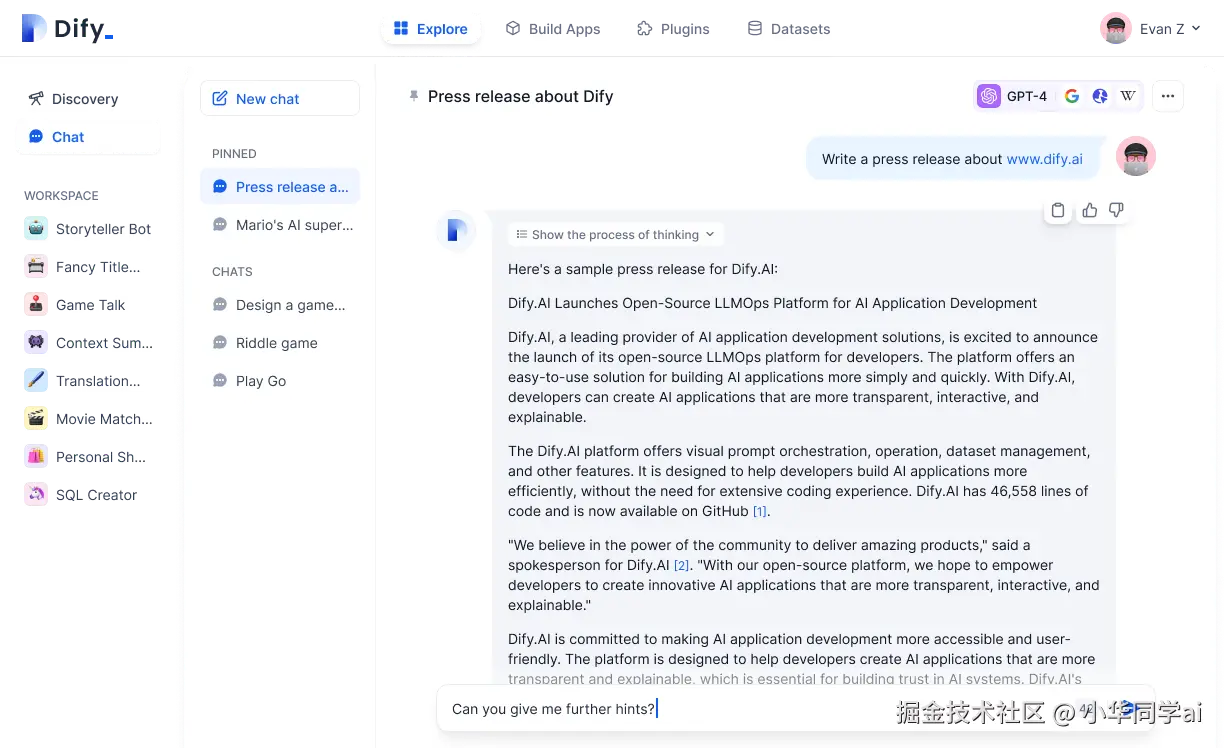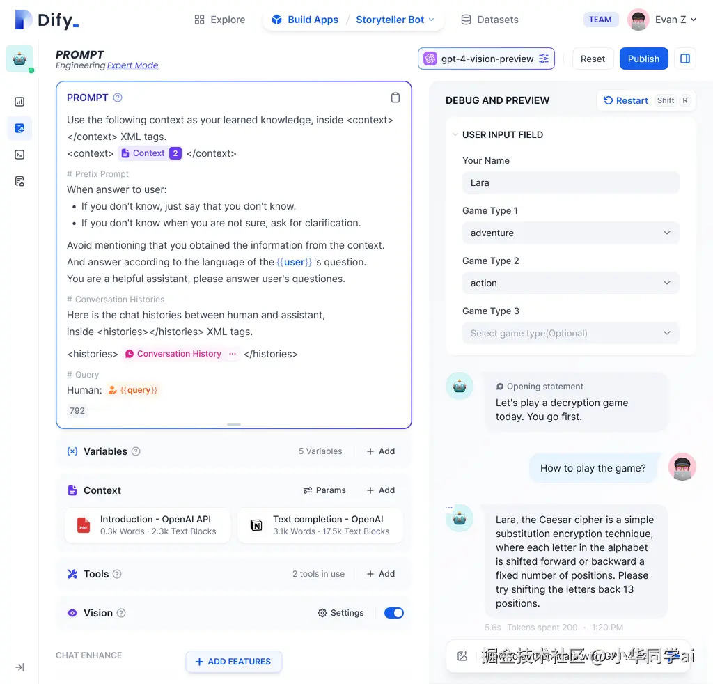 通过拖拽式画布构建复杂AI流程,支持条件分支、循环结构和多模型协同。开发者可实时调试流程节点,查看中间结果,大幅降低AI应用开发门槛。