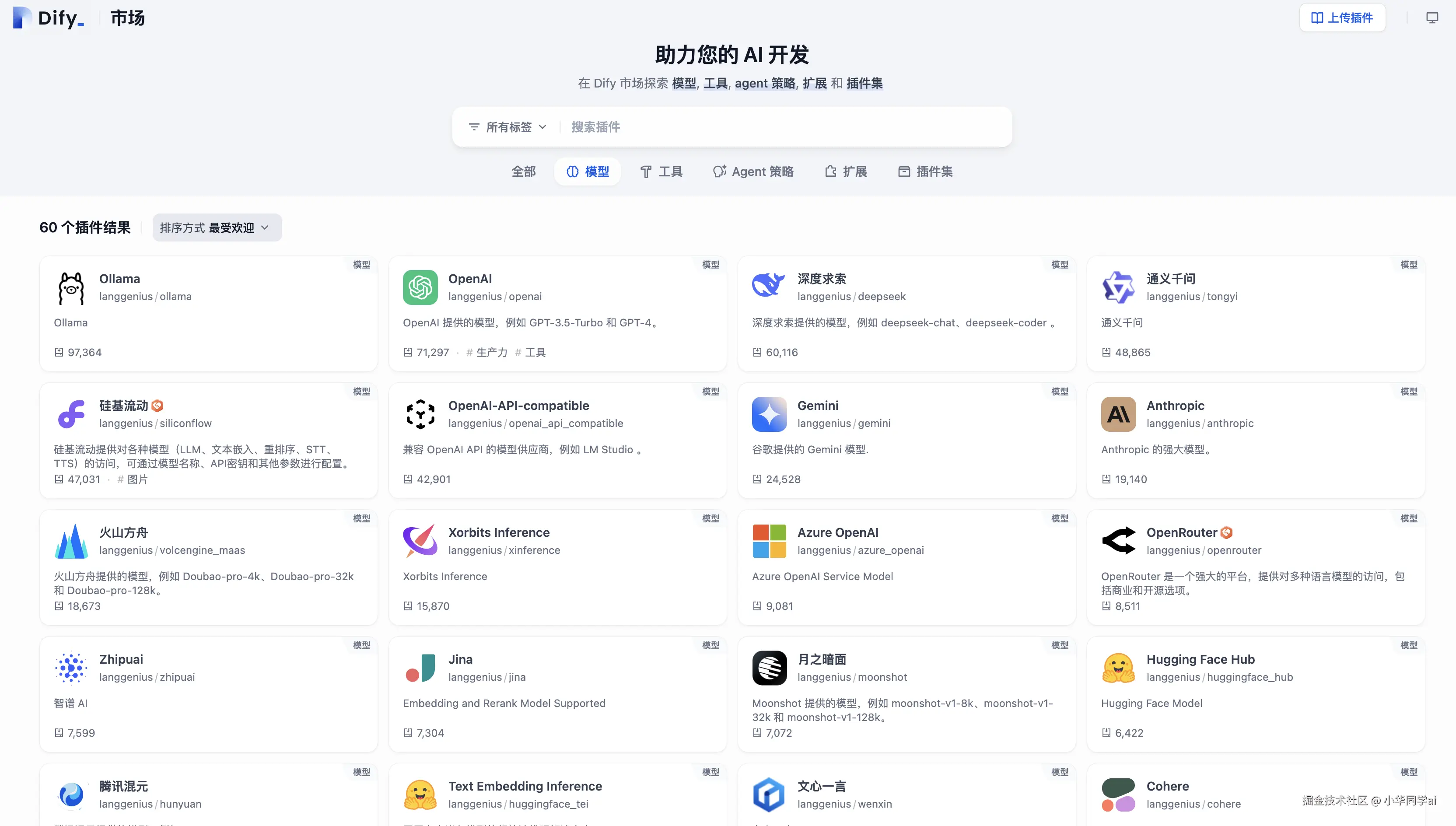 集成 GPT-4、Llama3、Mistral 等主流大模型,兼容 OpenAI API 标准。支持私有化部署模型,提供统一接口管理不同厂商的模型服务。