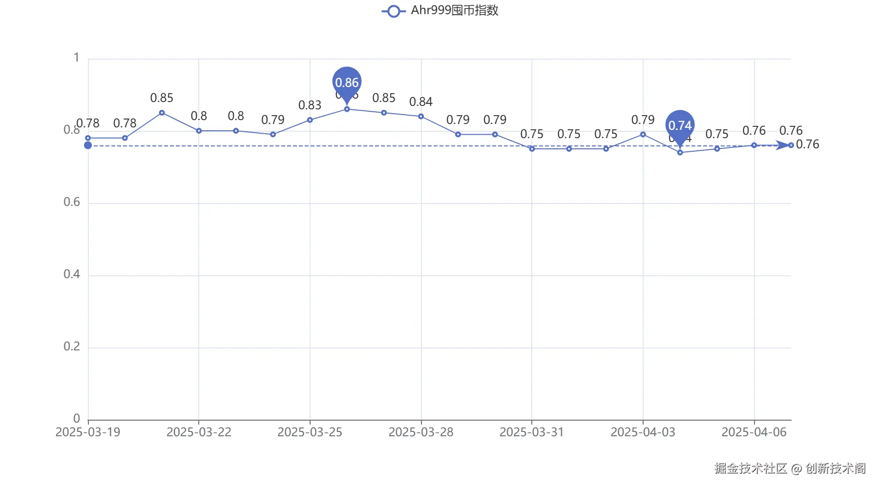 该指标由微博用户ahr999创建,辅助比特币定投用户结合择机策略做出投资决策。该指标隐含了比特币短期定投的收益率及比特币价格与预期估值的偏离度。