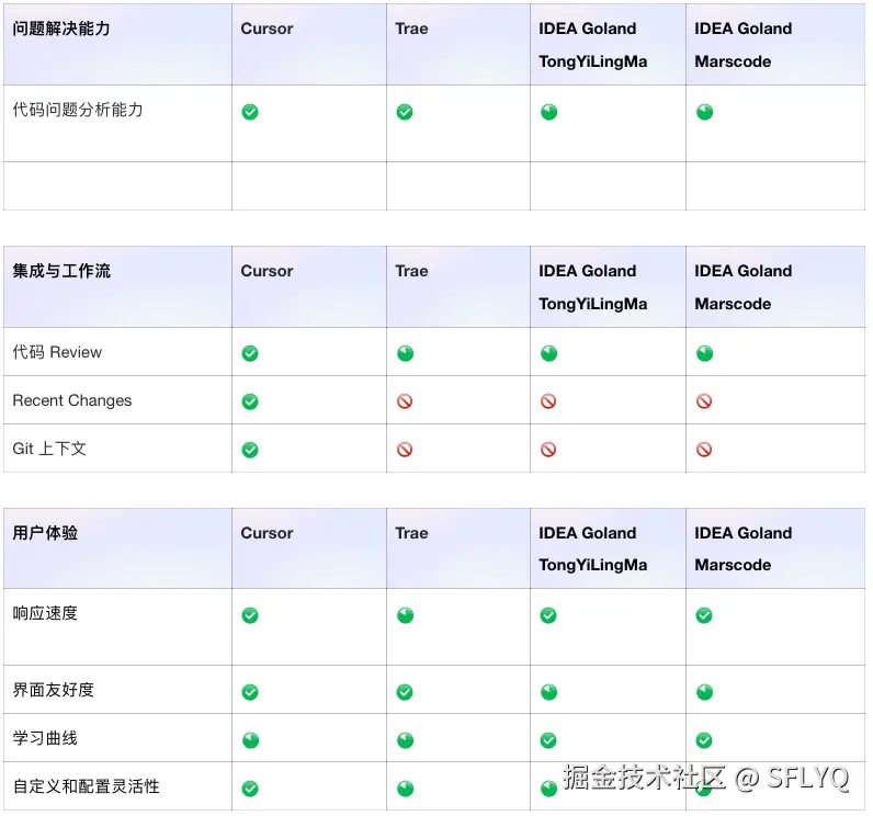 Cursor 总分最高,代码补全、生成、重构、问题解决能力、用户体验等均明显高于其他 AI Code 工具。