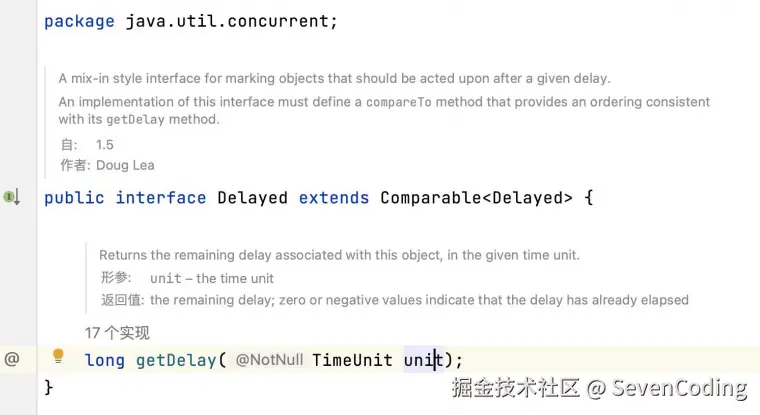 DelayQueue是JDK提供的一个无界队列,DelayQueue队列中的元素需要实现Delayed,它只提供了一个方法,就是获取过期时间。