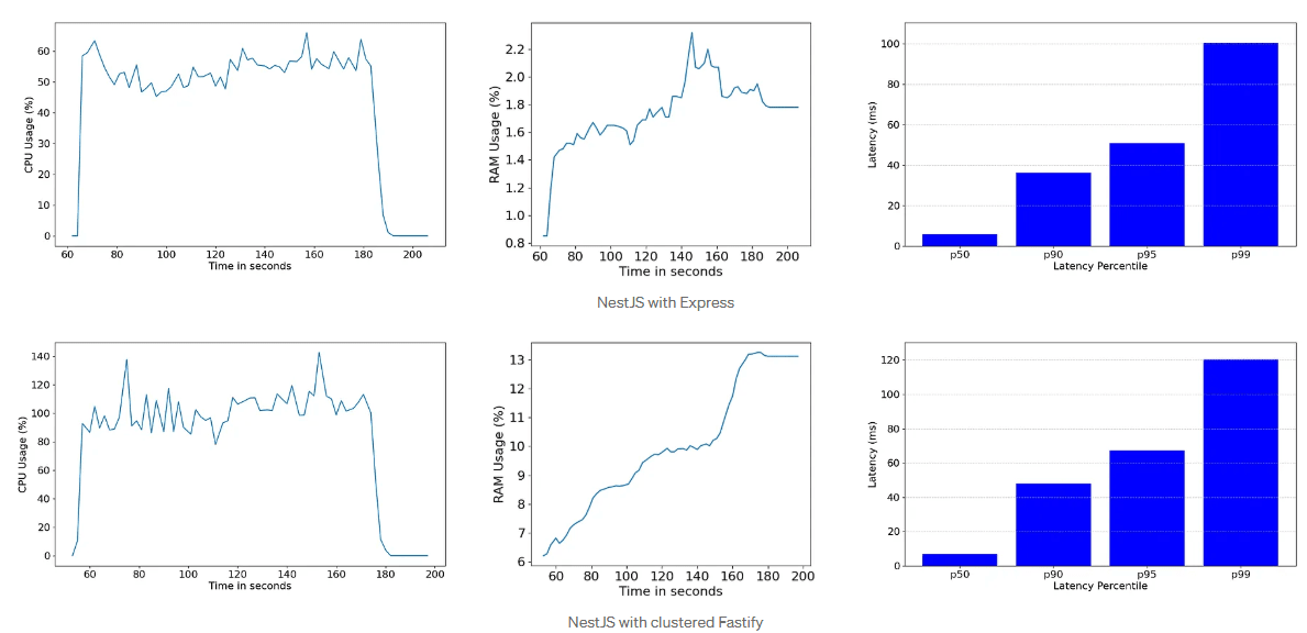 首先,我选择 NestJS 作为框架,因为它被广泛使用,并提供了一些优势,例如约定优于配置、控制反转和内置模块化。 在这里,我们将比较两种情况:一种是使用没有优化的带有 Express 的 NestJS,另一种是使用 Fastify 并入 cluster 库的 NestJS。