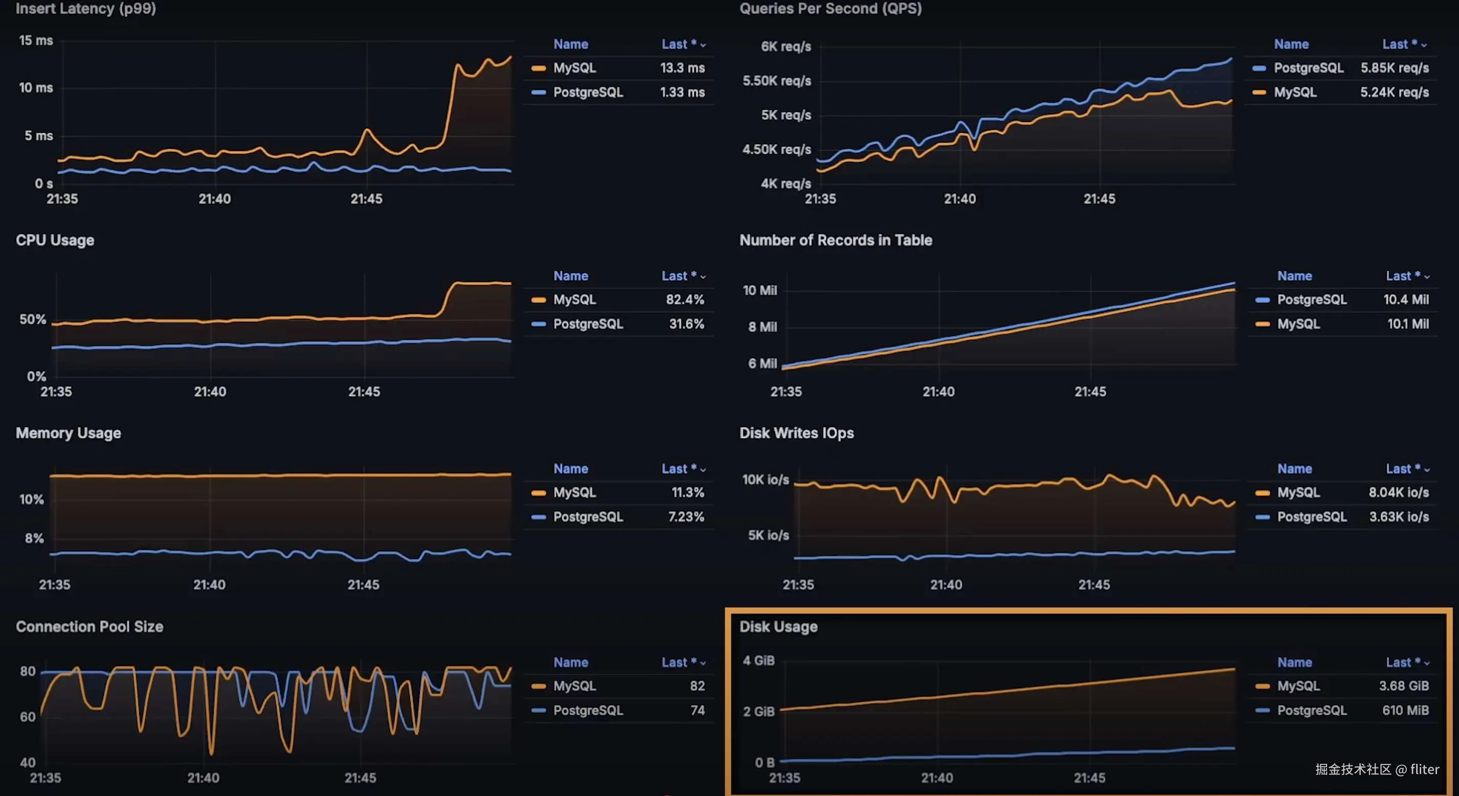 本内容是对知名性能评测博主 Anton Putra MySQL vs PostgreSQL Performance Benchmark (Latency - Throughput - Saturation) 内容的翻译与整理, 有适当删减, 相关指标和结论以原作为准