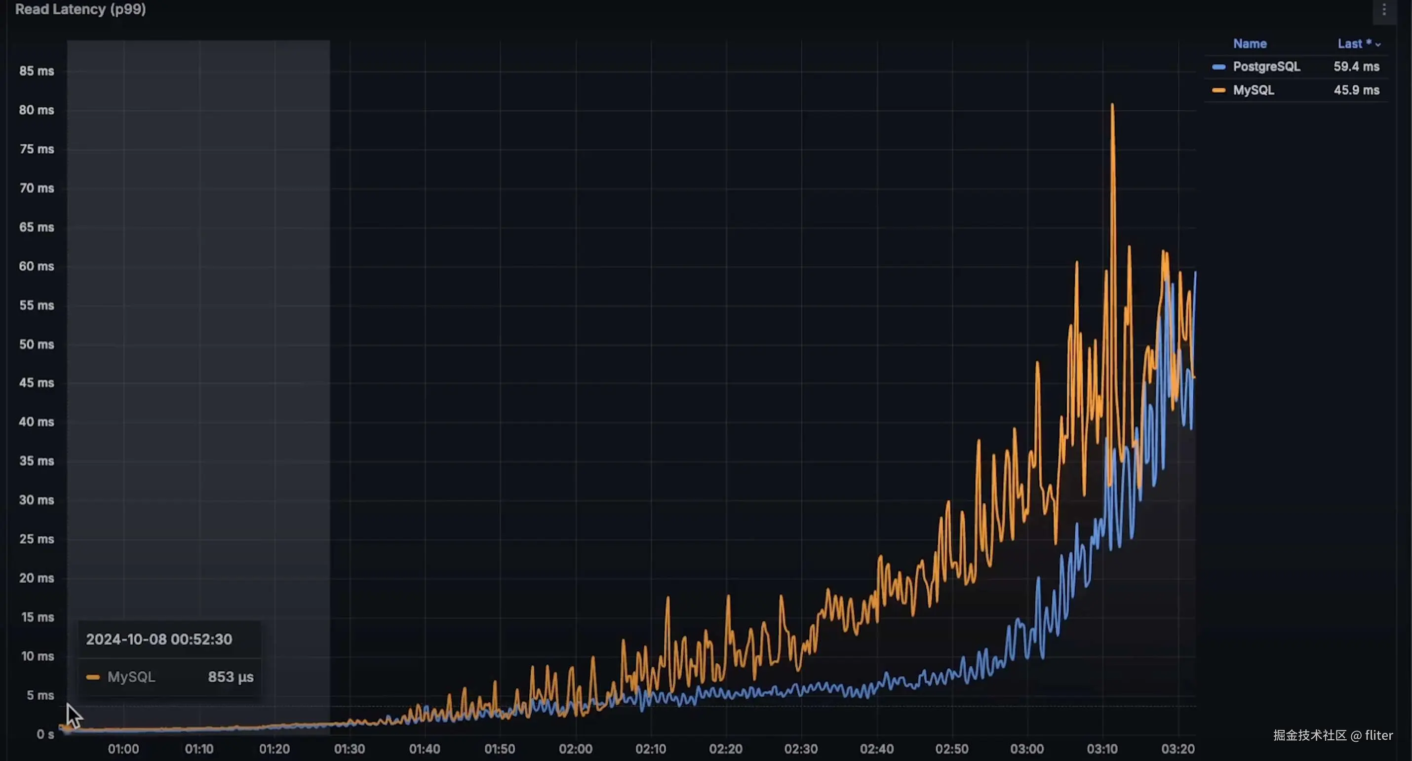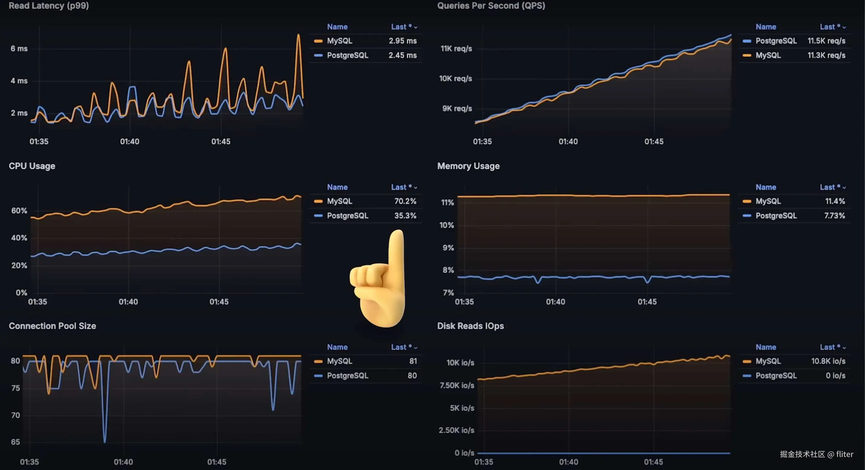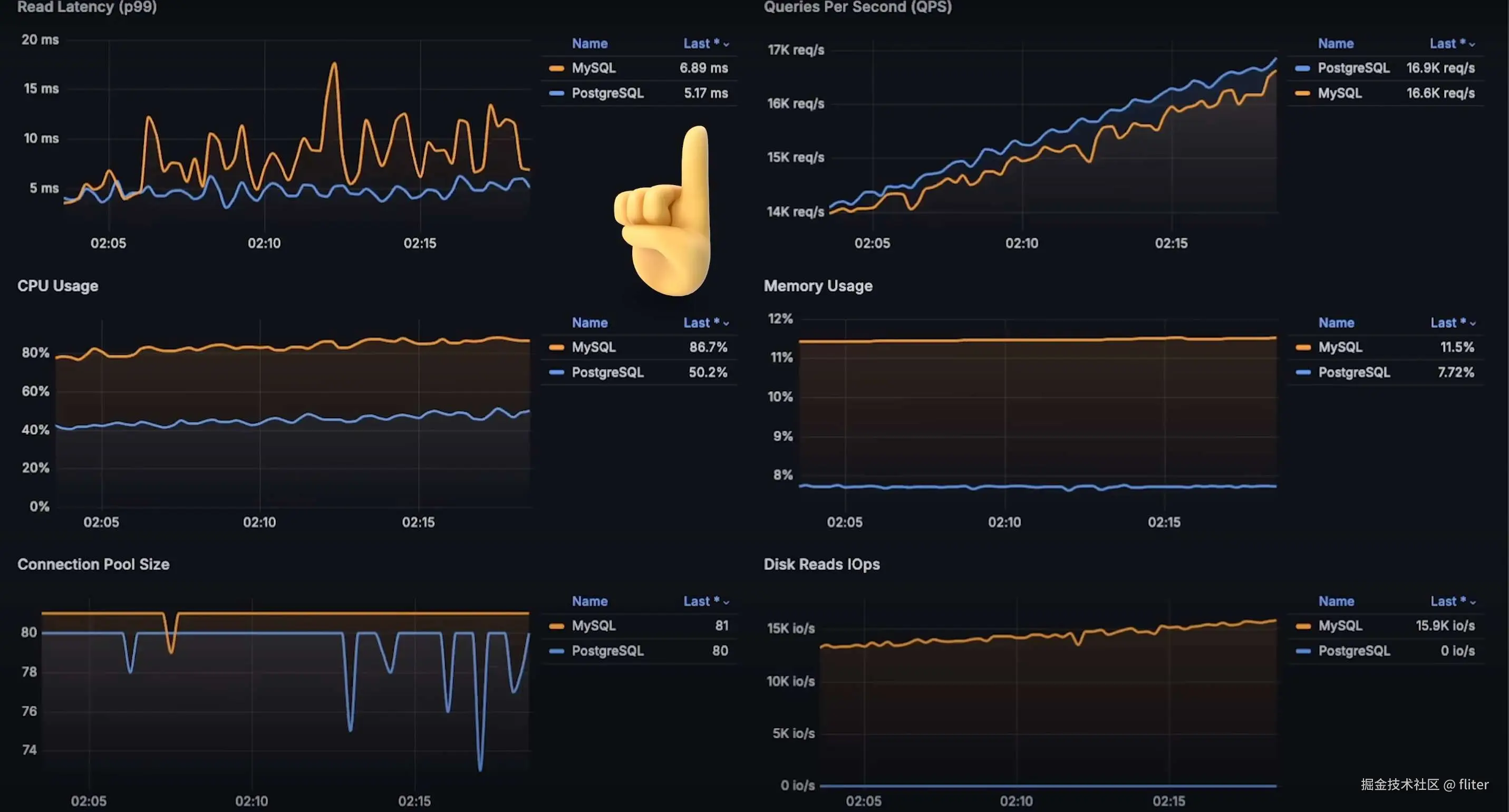 - 但 PostgreSQL 仍然比 MySQL 低延迟