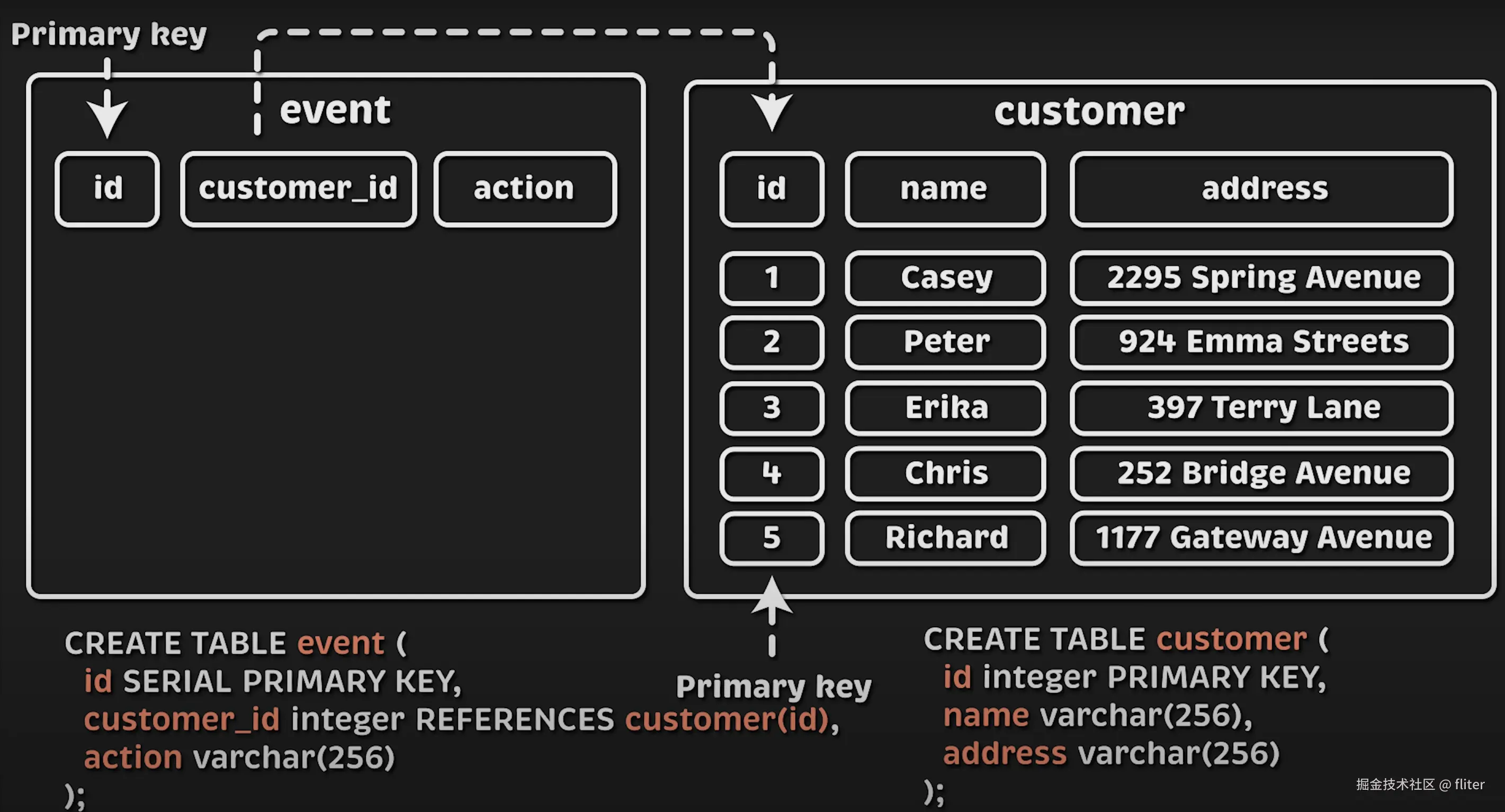 - 外键 指向 Customer 表的主键