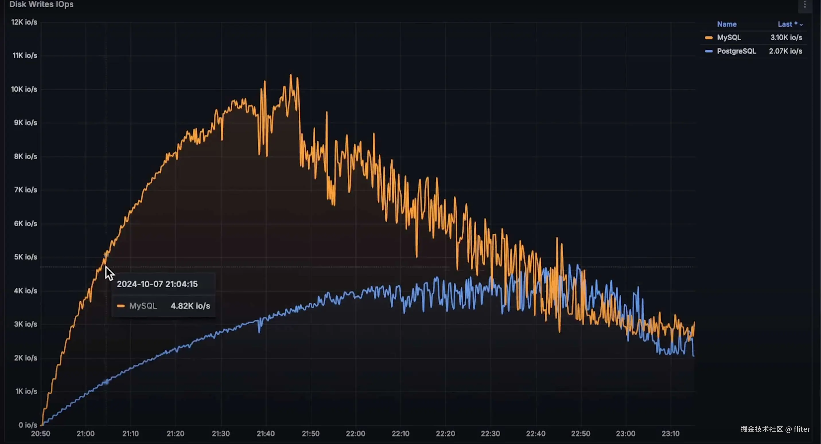 - MySQL 的延迟出现波动,而 PostgreSQL 仍然保持稳定