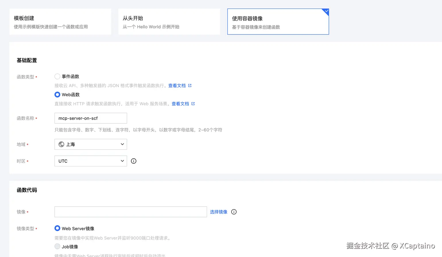 创建函数的方式以下图例子方式创建即可,其它步骤同镜像部署