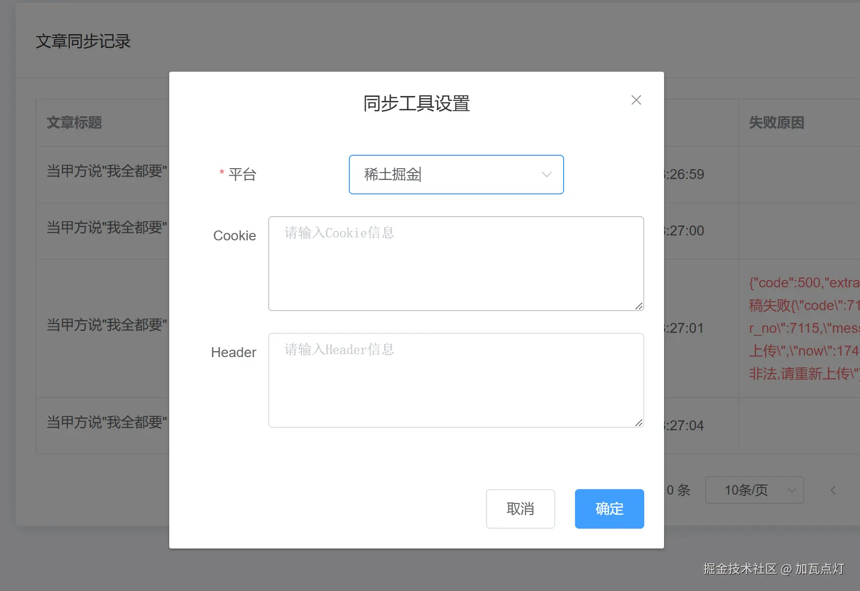 工具设置 如果cookie信息过期了, 通过同步记录可以看到原因, 此时可以重新上传cookie,然后再同步