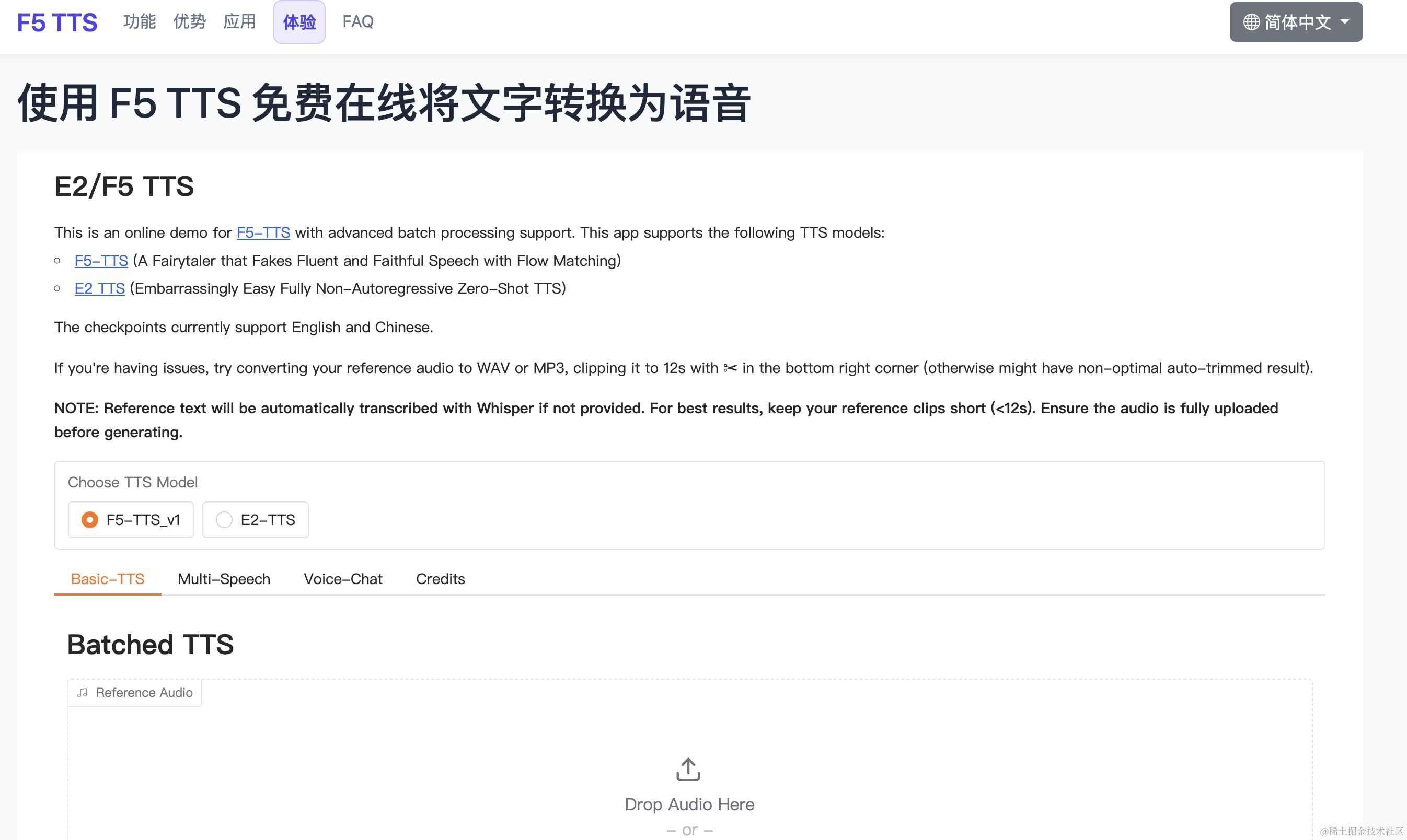 在线转换demo:免费在线文字转语音 - F5 TTS 语音生成器