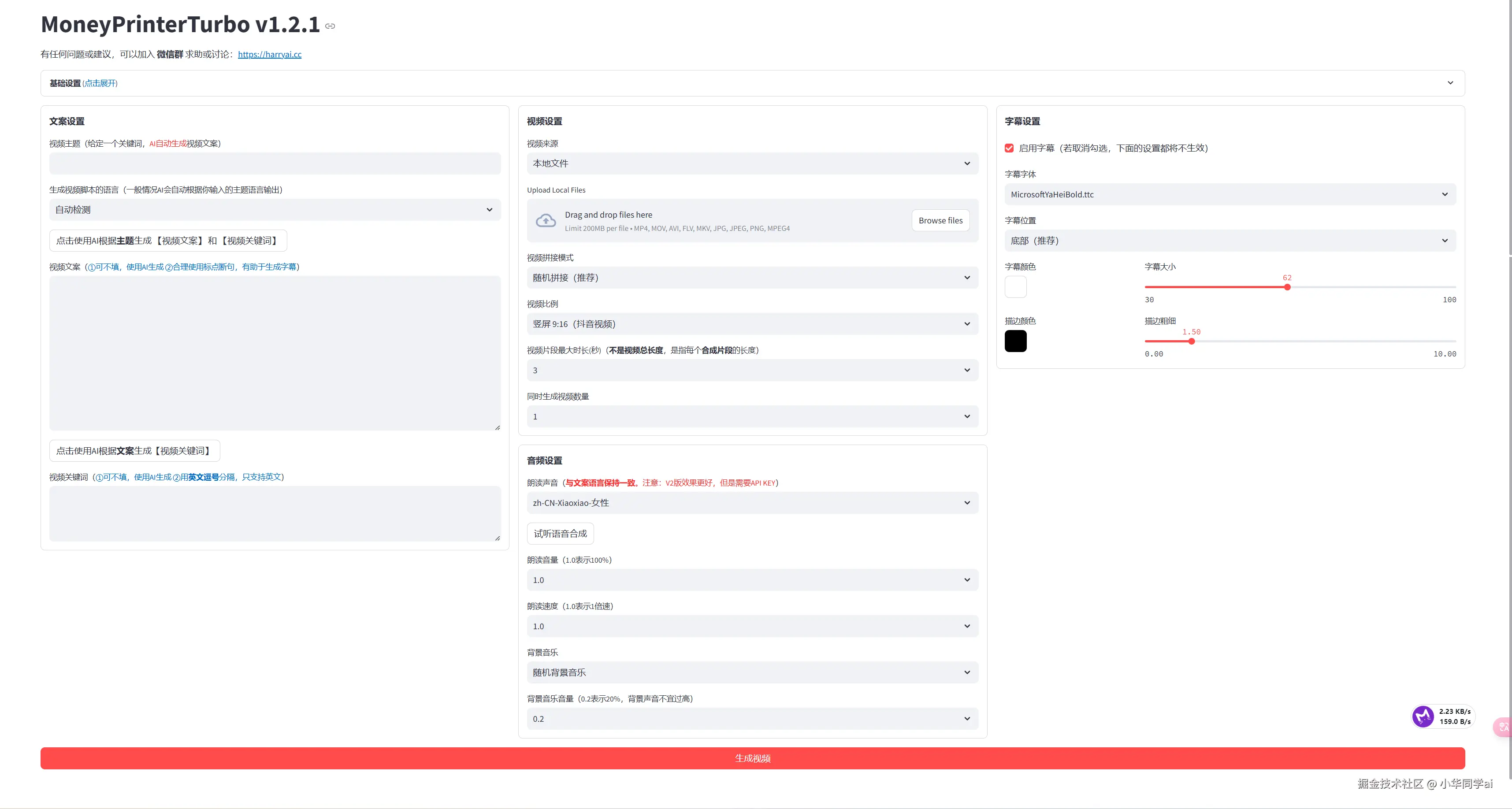 "MoneyPrinterTurbo 是基于AI大模型的全自动短视频生成工具,只需输入主题,3分钟即可生成包含智能脚本、AI配音、专业字幕和流畅画面的高清视频