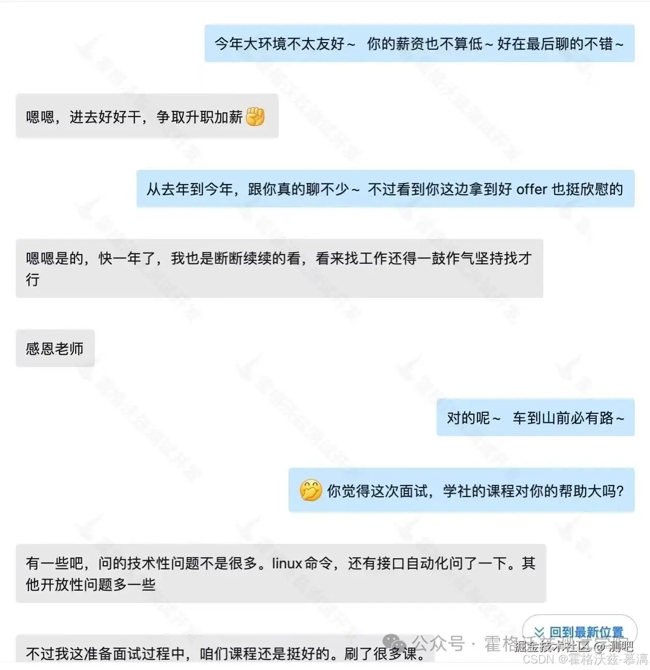 - 面试过程中刷了很多我们的课程,包括测开课程里面的性能测试内容,除了硬性技术问题,问的开放性问题非常多
